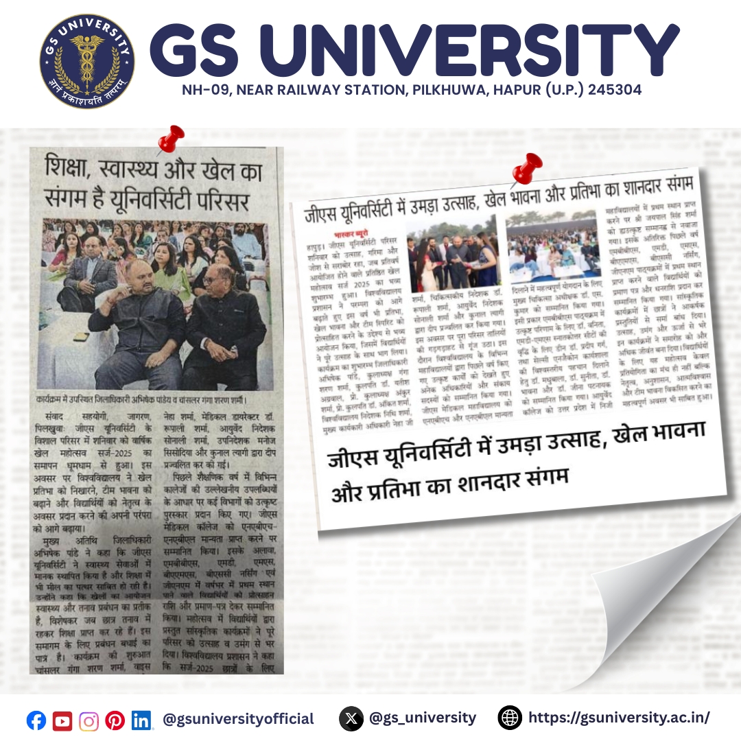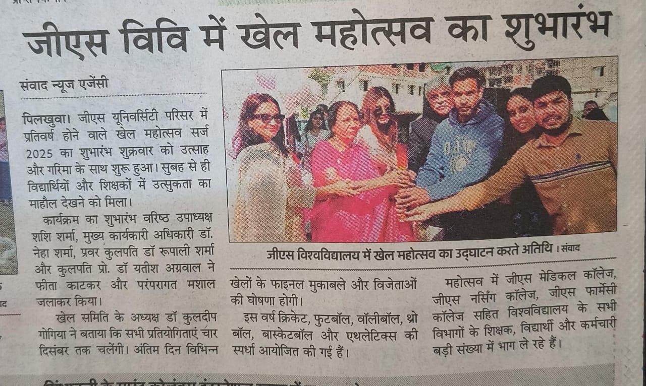 Nursing Staff at GS University celebrated the International Nurses Day by organizing a medley of cultural events. The prize distribution ceremony was presided over by the Pro-Chancellor, Dr. Ankit Sharma.